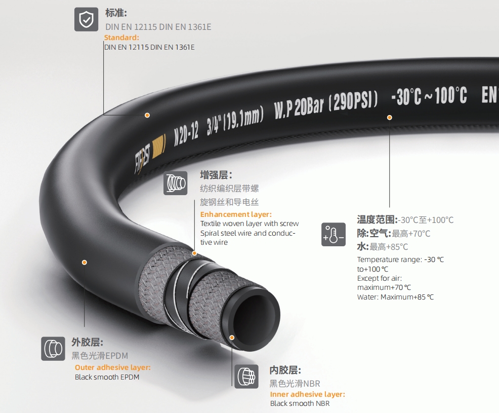 增强层:纺织编织层带螺旋钢丝和导电丝
