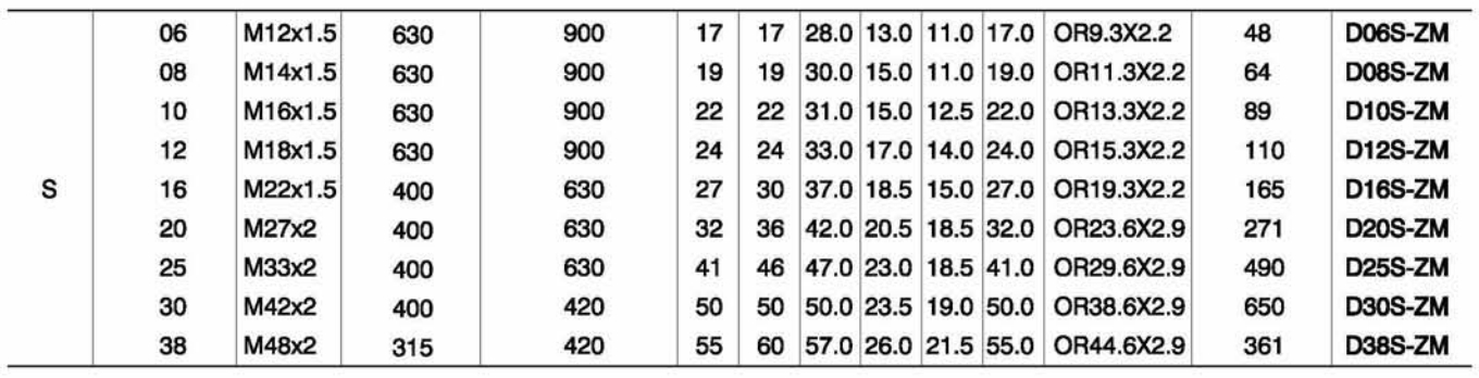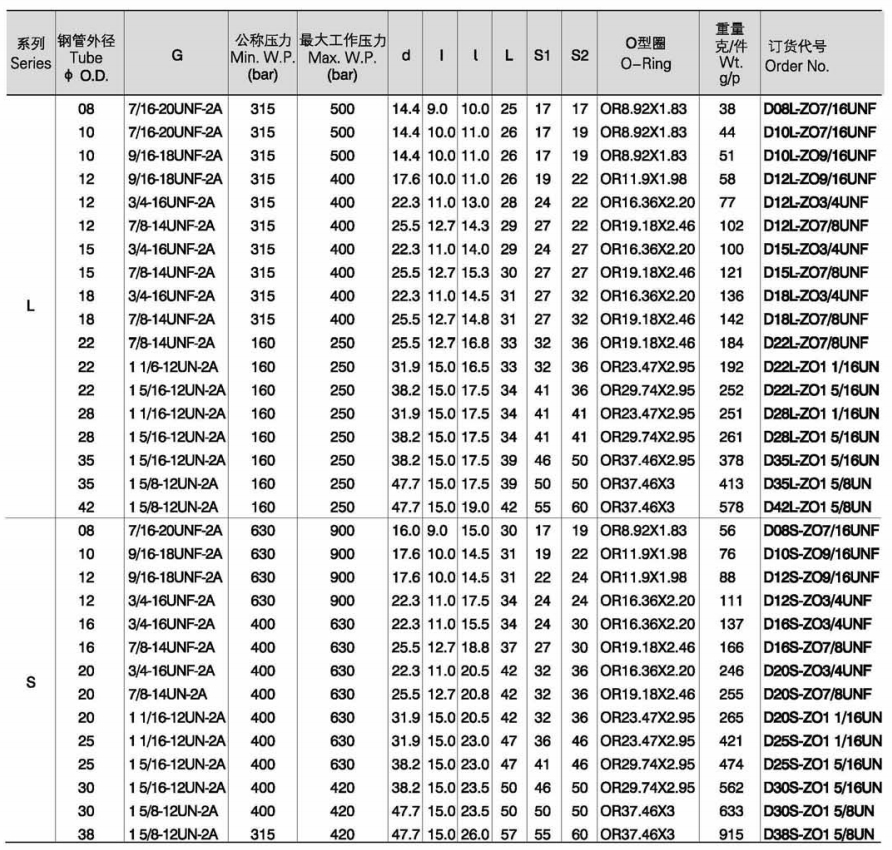不带螺母和卡套时的订货代号示例: D08L-ZO7/16UNFX